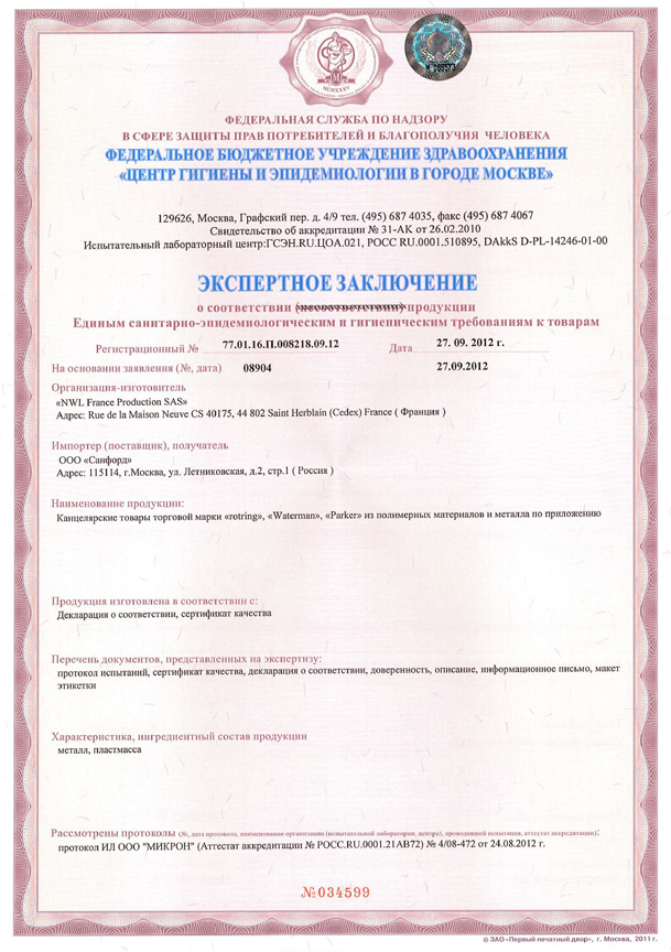 Сертификаты - Официальный дилер PARKER в Новошахтинске